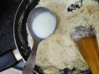 1. Roast desiccated coconut powder and roast for 1-2 minutes on low flame. Don't roast to brown.