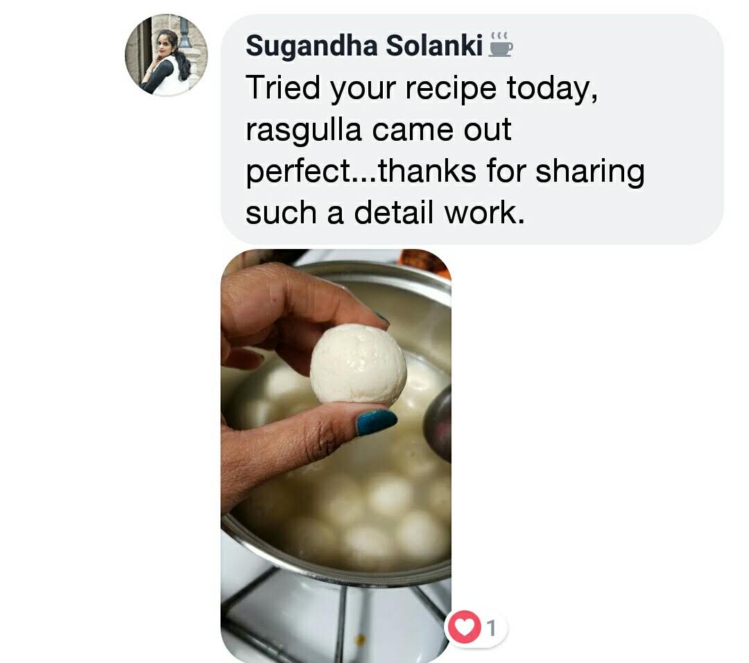 18. To check whether it's cooked, half full the glass with water drop rasgulla, if it sinks it's cooked, if it floats on top cook for another 10 minutes.